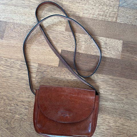 Mørkebrun skindtaske - meget blød og lækker.