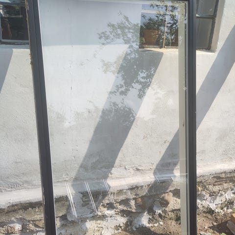 Stort vindue 119*132 mat glas sort udvendig hvid indvendig med børnesikring