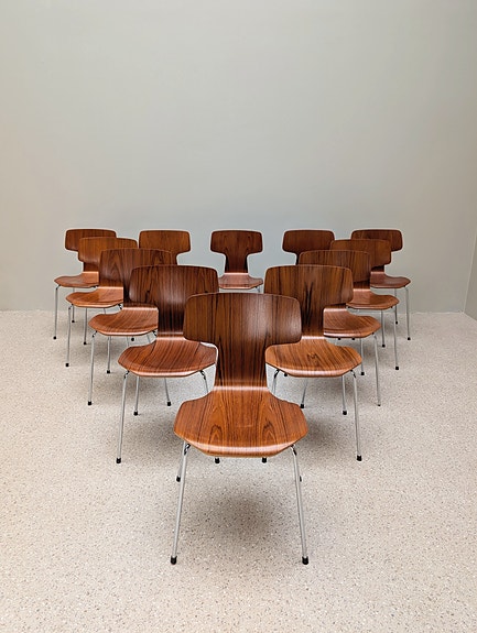 Bøgetræs stel, sæde og ryg polstrede i sort skai.