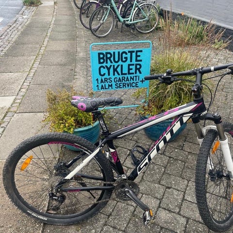 Nyserviceret og flot kvinde mountainbike med 27.5" dæk er parat til ture på vej og i skoven