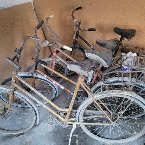 Vi har en bunke på ca. 40 cykler efter vi har ryddet op på lageret, de kan enten bruges til reservedele eller genopbygning – og der er også nogle fine imellem!