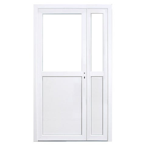 Dobbelt plastdør med 2 lags termoglas. Har mange forskellige mål.