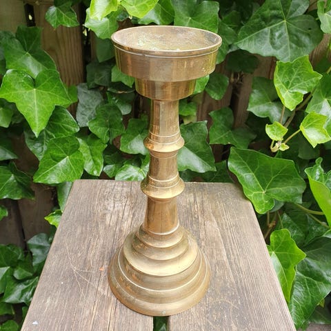 Gudesmuk kæmpe lofts lysestage i messing. Højde 148 cm