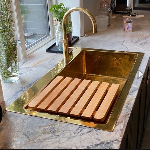 MASSIV MESSING KØKKENVASK. Se https://vierbilligst.dk/vare/messing-vask-massiv/