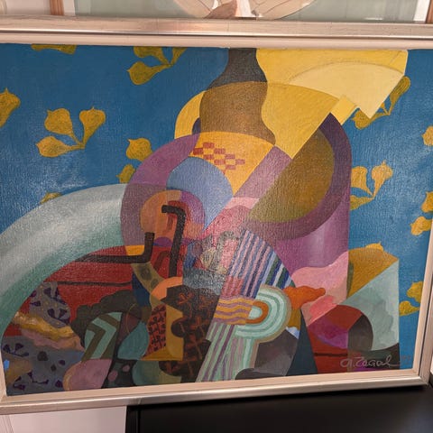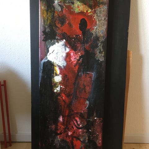 Kæmpe maleri af kunstner Nils Wengler der har portrætteret verdenshistoriens største albums. Signerer på bagsiden. Mål er 140 cm højt og 135 cm bredt.