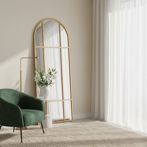 Med sin høje kvalitet og stilrene design skaber spejlet både dybde og lys i rummet, samtidig med at det fungerer som et dekorativt statement piece.