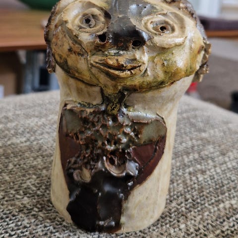 Flot retro keramik figur / skulptur, signeret AP Anne ( Anne og Peter Staugaard Bornholm ). Sjov og meget dekorativt genstand. Mål: 22xØ16 cm, 1,4 kg. Til salg 970 kr