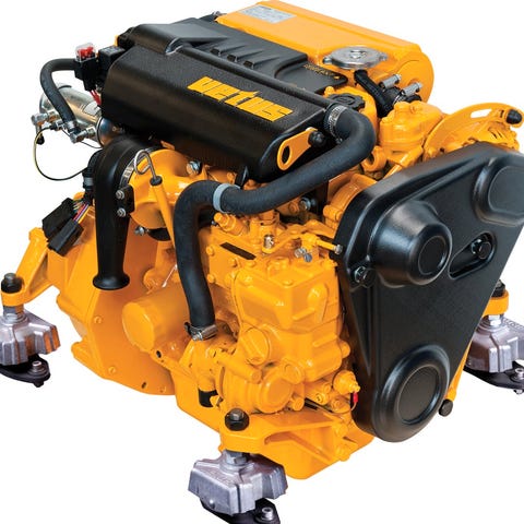 4-stroke marine diesel engine, fresh water cooled via heat exchanger, complete with zinc anode protection; cast-iron engine block; reborable liners; one piece aluminum cylinder head; indirect injection with unit injector pump in the cylinder head; overhead camshaft with timing belt; vane type lubrication pump on crankshaft; fresh water cooling pump in the engine block; stainless steel water injected exhaust elbow; self-priming sea water pump; air filter; anti-corrosion surface treatment.