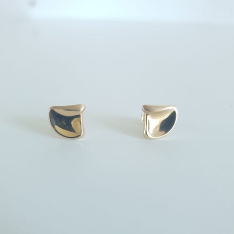 Søde ørestikker i 8 karat guld prydet med røgkvarts, stemplet 333. Mål: Ø 0,7 cm, 0,9 cm. Til salg 550 kr.