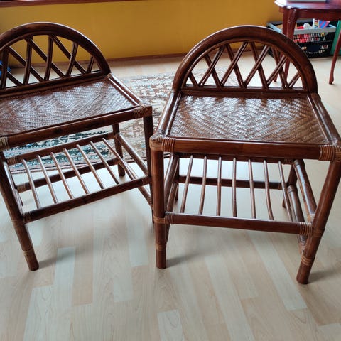 2 fine sengeborde, der er lidt forskel i farven, da den ene har stået tættere på et vindue. Det ses ikke når de står på hver side af sengen. Ellers rigtig fin stand.