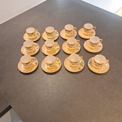 6 smukke kopper med mønster og 3 fødder