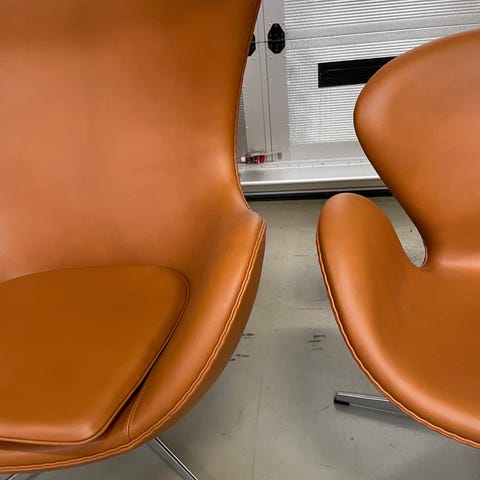 Arne Jacobsen, Ægget og svanen. Nyt skum, ny betrukket i walnut elegance læder.