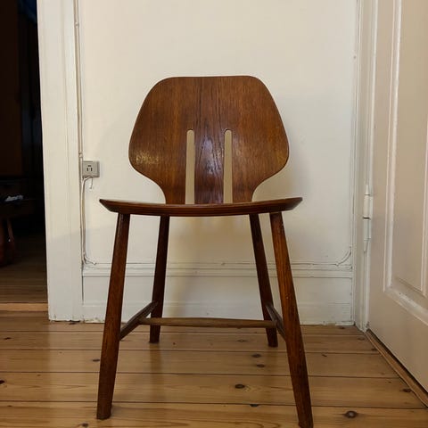 Ejvind A. Johansson stol i eg som er renoveret og lakeret i i sort med bevarelse af træstruktur så man tydeligt ser mønstrene. - en flot stol