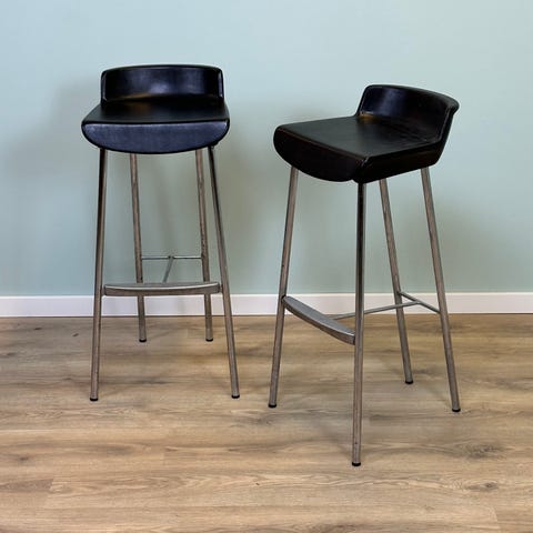 Nr. 1554: Skammel, barstol, højstol med sort læder