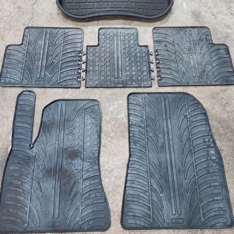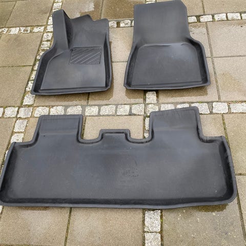 Tesla Model Y vintermåtter i kraftig gummi. Kun brugt en sæson. Som nye. Gummibundmåtter. Raze