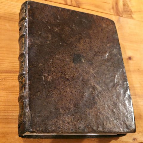 En smukt patineret bog, indbundet i originalt pergament. Høj bogbinder kvalitet. Fin overskriftsvignet, ved begyndelse på første kapitel, ved afslutningen på hvert kapitel og hvert stort begyndelsesbogstav i hvert kapitel, udført i smukt træsnit. Bøttepapir - håndlavet papir. Fin og ualmindelig sjælden bog.