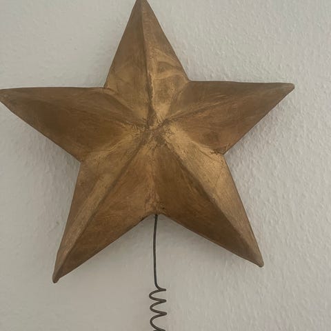 Usædvanlig flot stjerne fra Markslöjd. En Oxford stjerne i guld. Den lyser virkelig flot med varmt gullighvidt skær, meget pænere end på fotoet, men umuligt at fotografere. Diameter 28 cm. Der er afbryder på ledningen, som er 3,5 meter lang