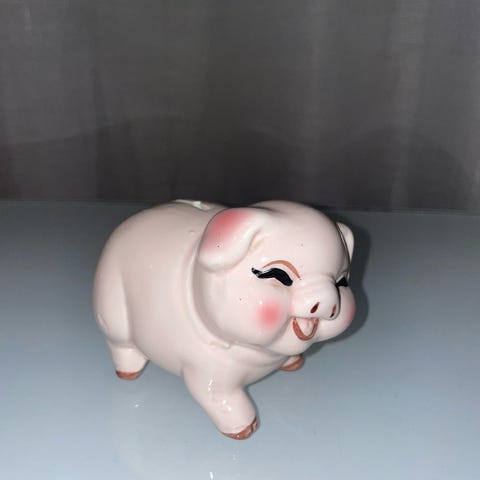 Dekorativ , gammel sparegris i rødmalet terrakotta fra 40érne med en fin patina.