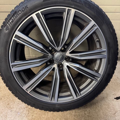 4 stks originale 21” originale Audi Rs fælge med Bridgestone Alenza 001 ao sommerdæk 265/45 21 med 90% mønster.