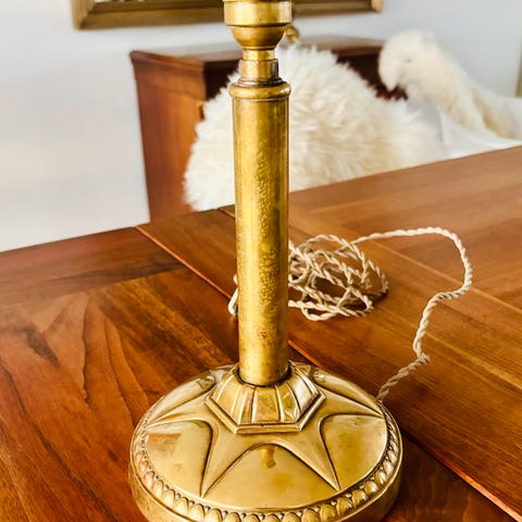 Gammel fransk Bureau bordlampe i messing med skærm i fattigmandssølv.