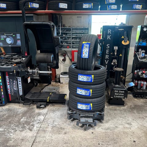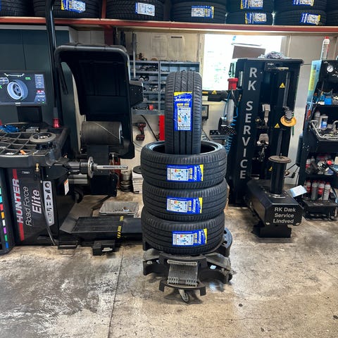 4 stks dæk med montering. Afbalanceres med vejtryk. Bil på lift.