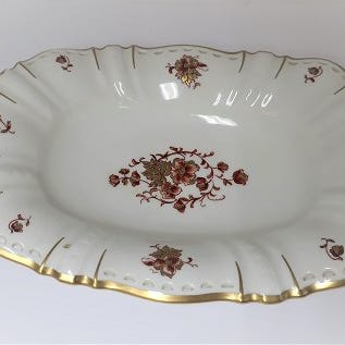 4 fine , gamle østersskåle fra Dahl Jensen med motiver af flyvende insekter og guldkant. Måler 8x7,5cm. Sælges kun samlet.