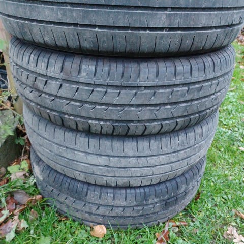 4 stks dæk med montering. Afbalanceres med vejtryk. Bil på lift.