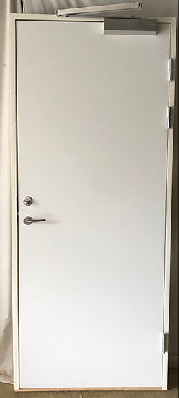 Døren er med et lags sikkerheds tråd glas og med dørpumpe.