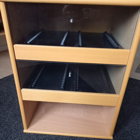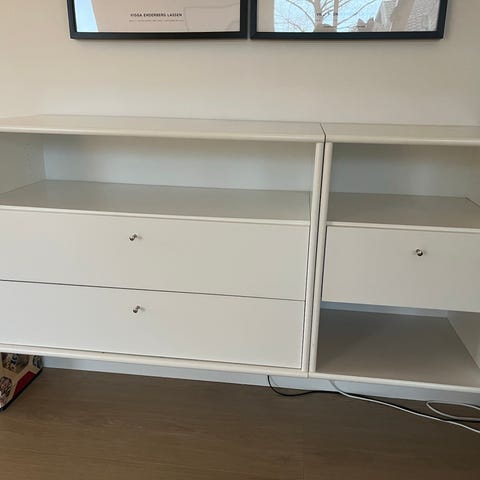 Mistral hi-fi reol med ophæng. Sælges billigt grundet mærke ovenpå. Ved ikke om man kan lakere den.