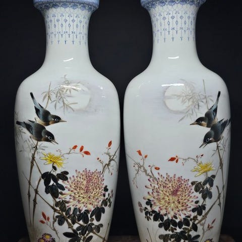 Antik 1800 tals , bemalet terrakotta blomster krukke