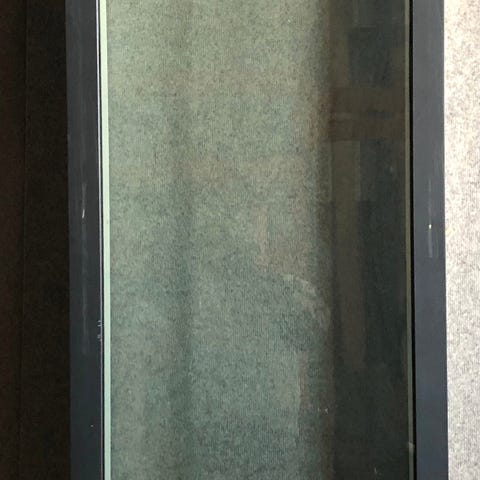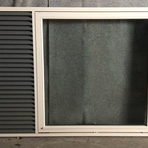 Vinduet er mørk grå udvendigt.