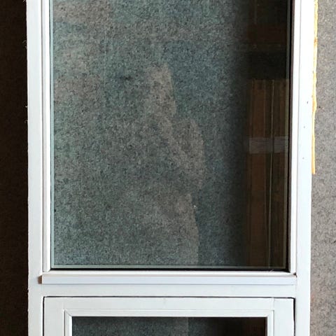 Vinduet er i træ/alu det ene vindue er fast karm og det andet er tophængt. Aluet er mat det bør males.