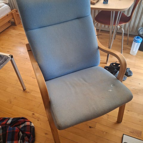 Stouby lænestol med kirsebær arm. Har 2 stk. Ny pris ca. 4800,- pr.stk.