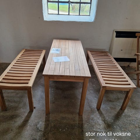 Det er selvfølgelig fremstillet af teaktræ så det kan holde til at stå ude i det danske klima året rundt uden nogen form for vedligehold af nogen art.