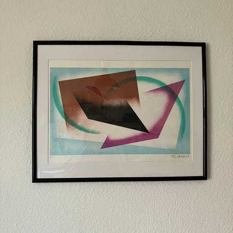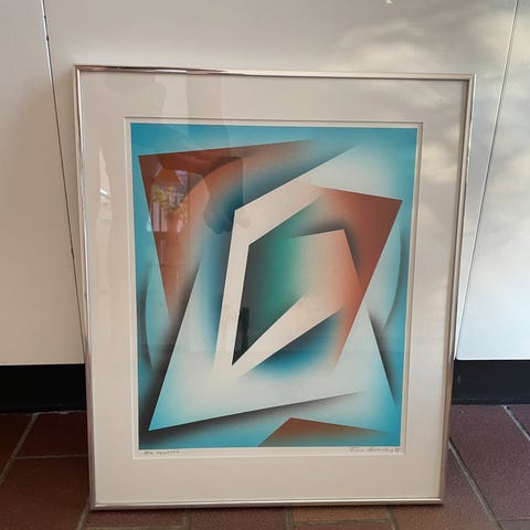Denne plakat viser en lille danp-skade langs den nederste kant. Billedet, det trykte navn og signaturen er upåvirket, og det beskadigede område behøver ikke at blive vist i nogen indramning.