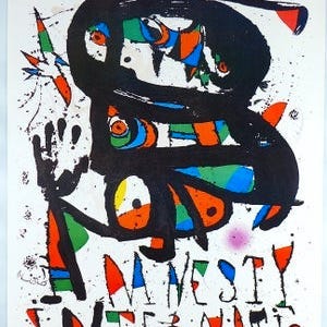 Plakat fra Amnesty Internationals 25. jubilaeum, 1986, med reproduktion af Frank Rubins 1962 abstrakt motiv. Tryk af Permild & Rosengreen.