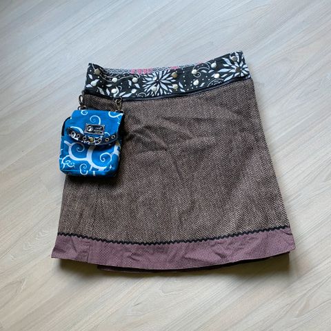Skøn nederdel af småternet grøn uld med foer.