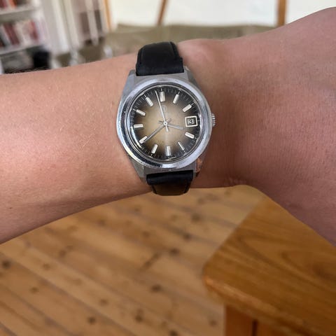 Klassisk gammelt ur med en flot skive, uret kommer med ny læderrem.