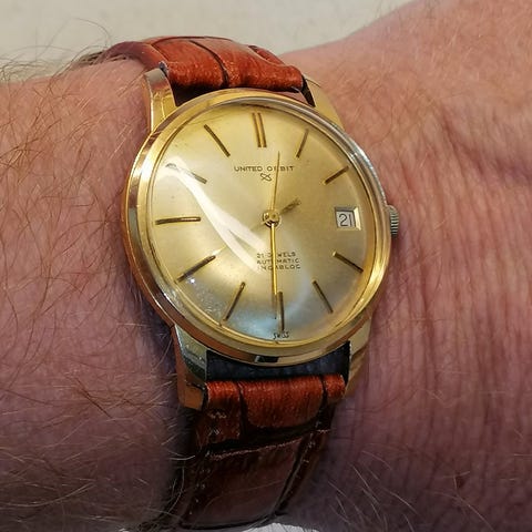 Et flot ur med en en meget fin urskive og guldbelagt stål urkasse. Uret er i meget fin stand, med en detalje ved timeviseren hvor der er tal ved 12’er og 6’er positionen.