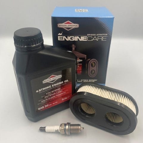 Indeholder 0,6 ltr. motorolie, tændrør og luftfilter.