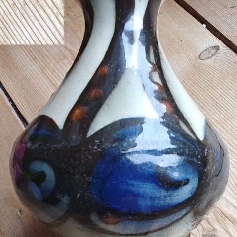 Smuk timeglasformet vase fra #danicokeramik dekoreret med #kohornsglasur
