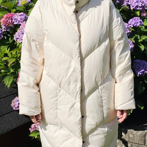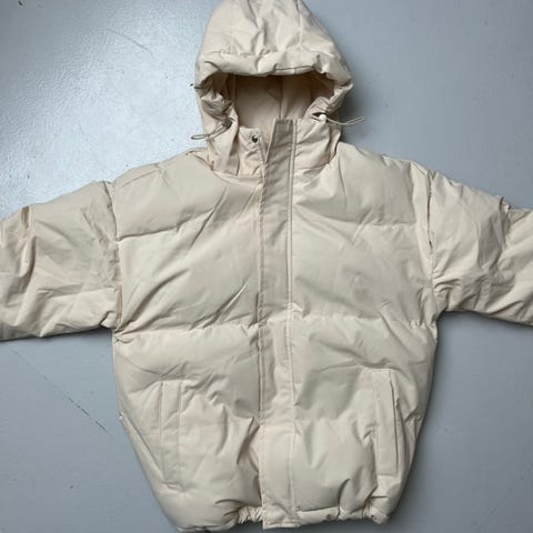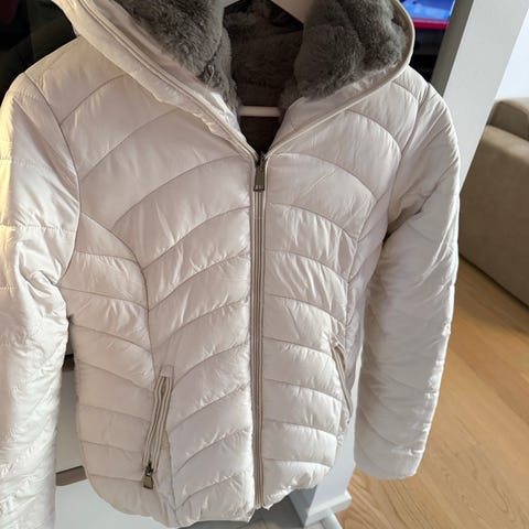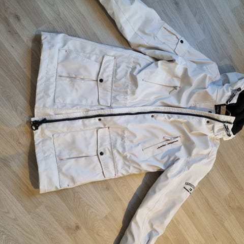 Flot damevinterjakke med hvid for og snøre detaljer til 300,-