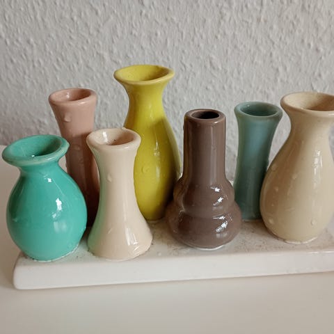 Skøn syvkantet, signeret miniature i en sunglignende glasur.