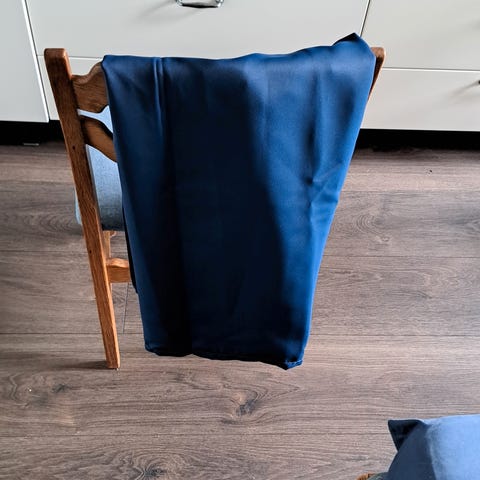 70’er gardiner med flot mønster i blå
