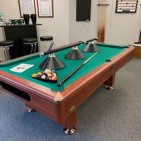 8 fods brugt, italiensk poolbord - 100% klargjort med nye bander og nyt klæde. Velegnet til institutioner, efterskoler, sommerhuse eller private.