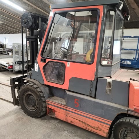 Lukket kabine, frisights mast, sideskift samt gaffelflyt.