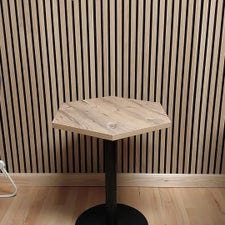 Sekskantet cafebord i høj kvalitet. 52 x 52cm Kan sammensættes til større borde i forskellige mønstre.