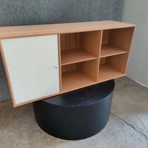 reol med 4 rum lys grå spånplade inkl. 2 stk. reol skydedøre i antracit