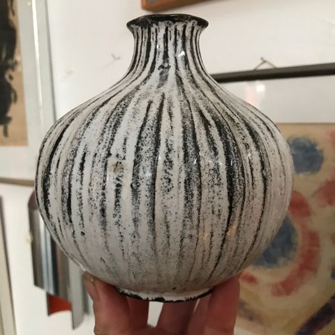 Gammel Otto Keramik vase i turkisgrøn og sort (18cm høj)