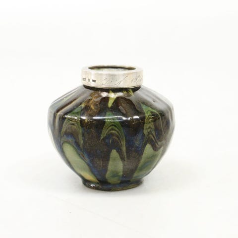 Denne smukke lille vase er meget farvestrålende med den turkisgrønne nuance kombineret med sorte/koksgrå.
